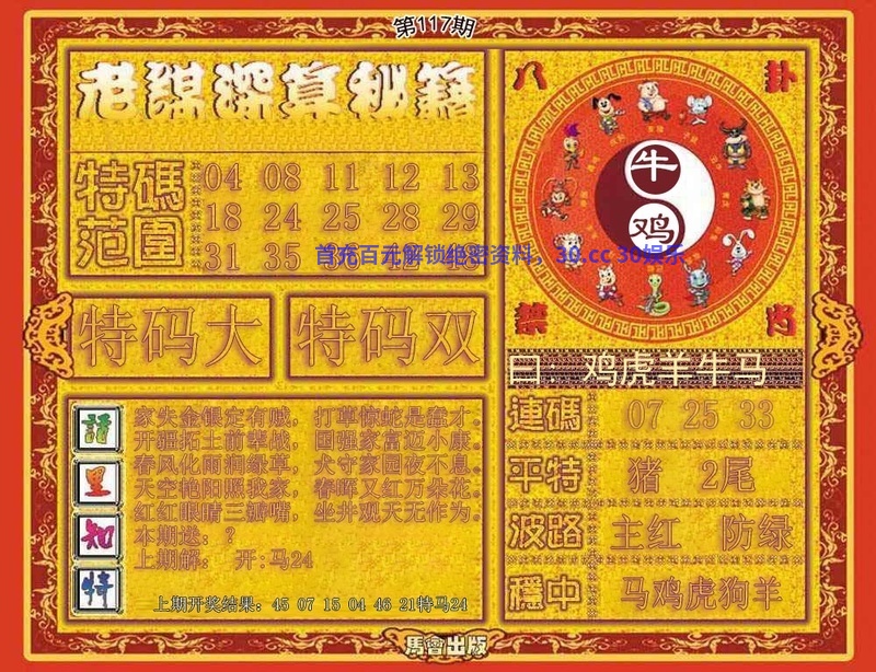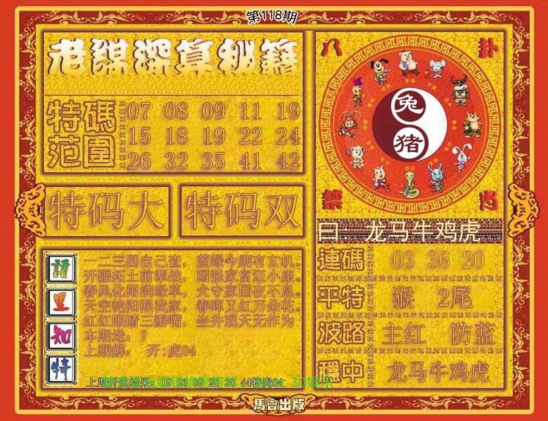 122期:密门仙机/心水特码信/黄大仙天书/波色生肖诗/生肖歇后语
